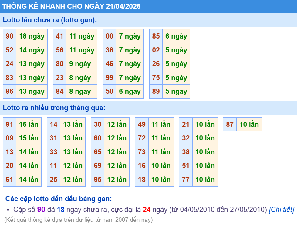 - Thống kê lô tô về nhiều trong tháng gần nhất.